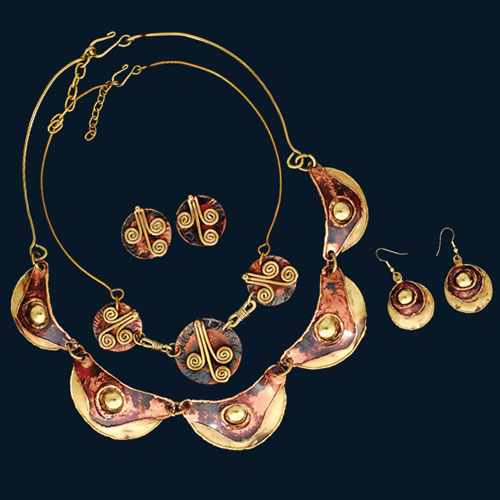 These contemporary ethnic styled pieces of Copper and Brass jewellery